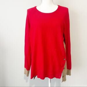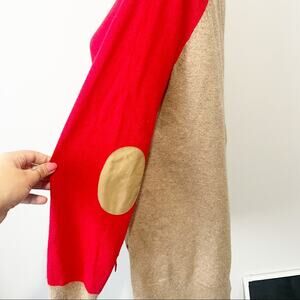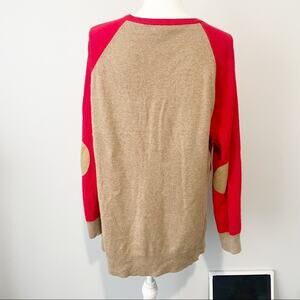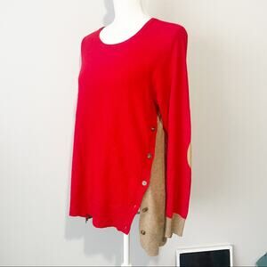 J Crew wool elbow patch sweater size large red tan side button crew neck grandpa