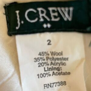 J Crew wool blend skirt. Zip in back. Length 16” from waist to hem. In beautiful condition. Size 2