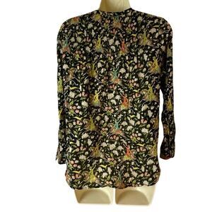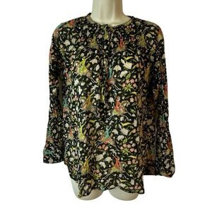 J. Crew x Drakes London Horseback Rider Popover Floral Blouse Top Shirt Button Up Size 00 XXS