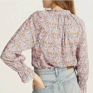 J. Crew x Liberty Honeysuckle Floral Ruffle Neckline Fluted Sleeve Top