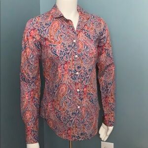 Button down light weight blouse with Peter Pan collar. Long sleeve cotton. Size 00. Excellent Preowned condition