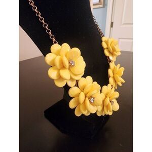 This vibrant J. Crew yellow flower statement necklace is a bold and beautiful accessory that adds a pop of sunshine to any outfit. Featuring large, eye-catching yellow floral accents set in a polished gold-tone finish, this necklace is the perfect blend of playful and chic. Its unique design makes it an ideal statement piece for both casual and formal occasions. A must-have for anyone looking to elevate their jewelry collection with a piece that's both stylish and versatile. Whether dressing up a simple top or completing a special ensemble, this J. Crew necklace is sure to turn heads.