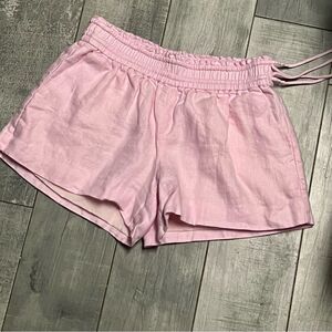 J Crew 100% Linen Pink Shorts Elastic Waist Pull On Side Drawstrings