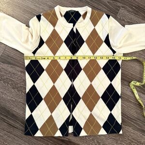 J. Crew Argyle Hook Closure Short Sleeve Cardigan