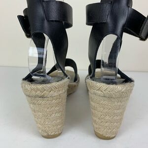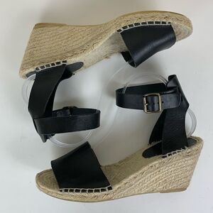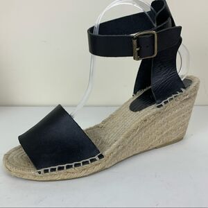 J Crew Black Leather Corsica Ankle Strap Espadrilles Sz 11 EUC. Some wear on soles as shown. Upper leather is pristine. Great classic style goes with many occasions. .75” platform and 3.5” jute wrapped heel. Comfortable and stylish. Please see photos for additional details.