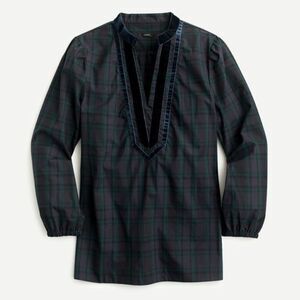 J. Crew Black Watch Tartan Plaid Velvet Trim Tunic Top Shirt XXS Green Navy