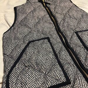 Chic vest with a classic black and white pattern. Features a sleek design with practical front pockets and a secure zipper closure.