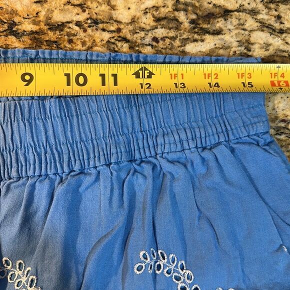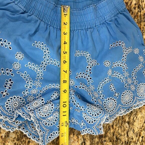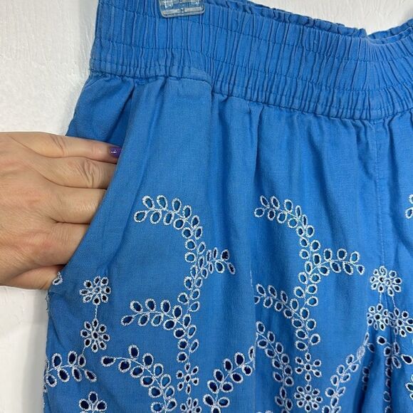 J. Crew Blue Elastic Waistband Floral Embroidery Shorts Size M