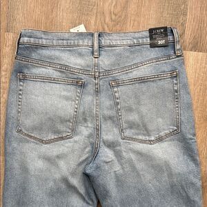 Experience the timeless appeal of J. Crew's blue straight leg jeans, featuring a classic light wash. These jeans are crafted from medium-weight denim, ensuring both comfort and durability for everyday wear. The straight-leg cut offers a flattering fit, making them a versatile addition to any casual wardrobe.