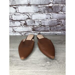 J Crew Brown Leather Pointed Toe Slip On Mules Flats Shoes Women Sz 8.5M US/39EU