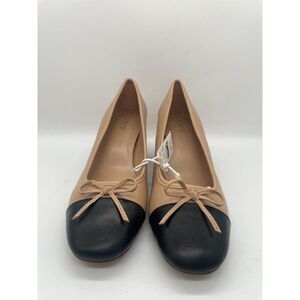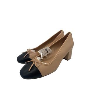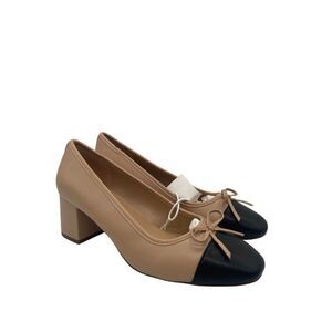 J. Crew Factory Cap Toe Ballet Block Heels Pumps Bows Sz 9.5 Corpcore Beige Black