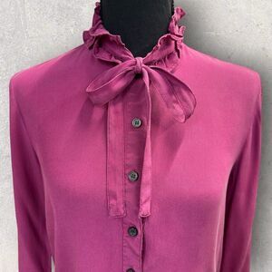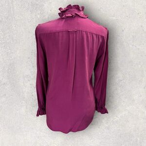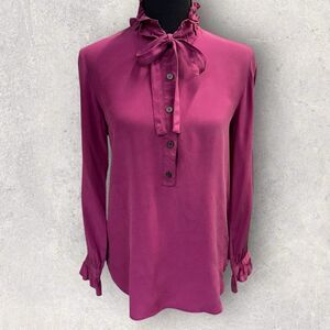 J Crew Classic fit silk ruffleneck popover shirt in grape size 00