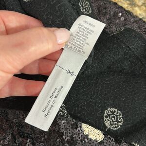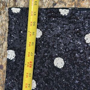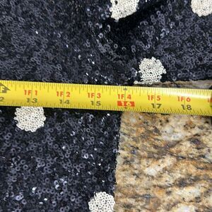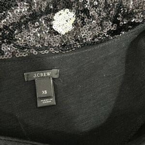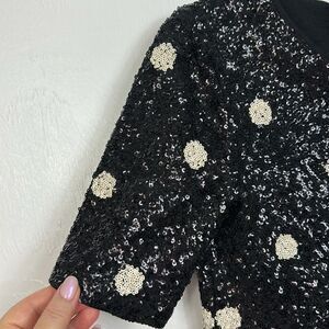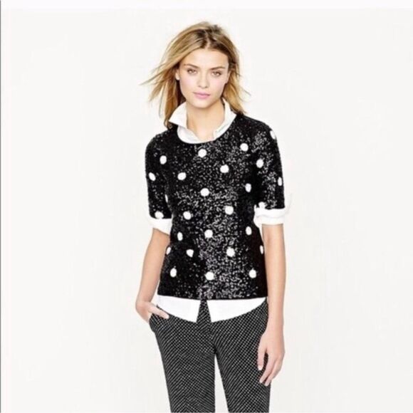 J. Crew short sleeved top covered in small sequins in a polka dot pattern of white on black