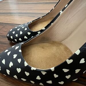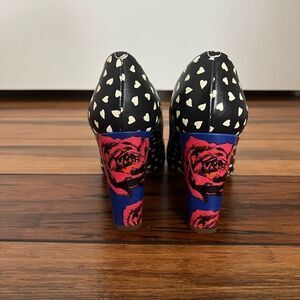 Super cute floral and heart block pumps. Gently worn, please see wear in photos. Perfect for date night.