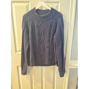 J. Crew Ezra Navy Pom Pom Cable Knit Sweater sz XL EUC