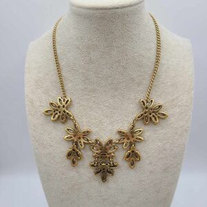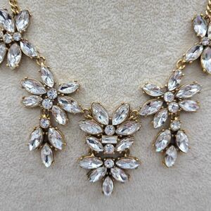 J Crew Factory Clear Crystal Gold Tone Statement Necklace NWT! NEW!