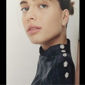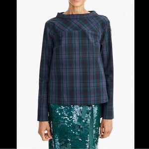 J. Crew Funnel Neck Black Watch Plaid Jewel Top sz 0
