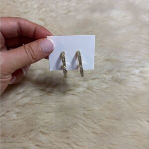 These J. Crew earrings feature a minimalist geometric design with open triangular shapes, crafted in a warm gold hue. Their sleek, polished finish and modern style make them perfect for everyday wear.