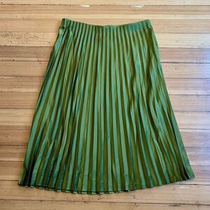 J. Crew Gwyneth Pleated Slip Skirt. Size XL. NWT. Excellent, new condition. Sweet, classic pleated slip skirt with a touch of sheen. Stretchy waistband. Polyester, machine wash. Bronze-y green (closest color in pics to the pic with hangtag). Stock pics for style reference.