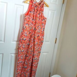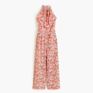 J. Crew High Neck Hallelujah Coral Floral Jumpsuit Liberty Josephine Print Sz 14