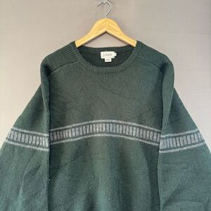 J. Crew Knit Green Men’s Wool Striped Sweater Size XL Preppy 2000s Style