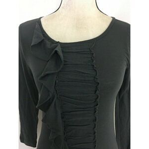 J Crew Womens Solid Gray Long Sleeve Ruffle Top 100% Cotton Fitted Xs