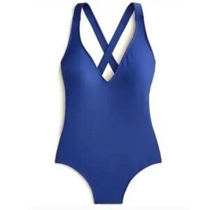 J. Crew Long Torso Swimsuit High-support cross-back one-piece Blue Size 4 NWT
