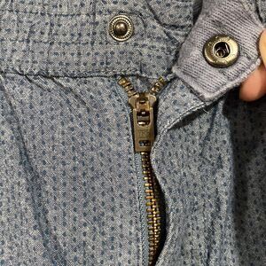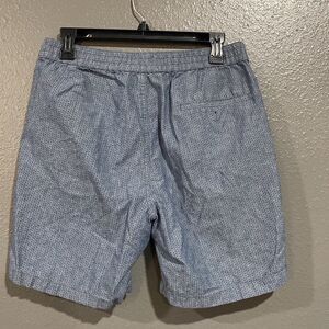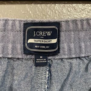 Excellent condition J. Crew tripper dock shorts. Size medium. Blue with navy dots all over. Two pockets in front and one on the back. Elastic waist with snap and zip closure in front.