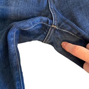Preowned. Please see picture as there is some puckering around the bottom of the rise in the seat of the jeans.