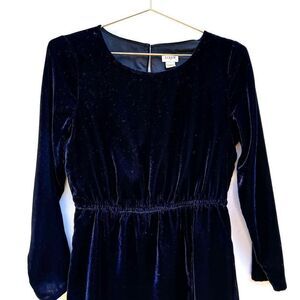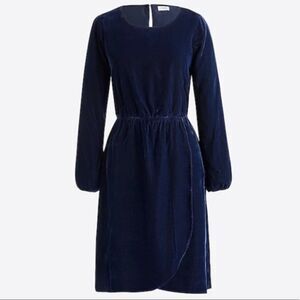 J. Crew Navy Blue Velour Velvet Long Sleeve Elastic Waist Dress K3470