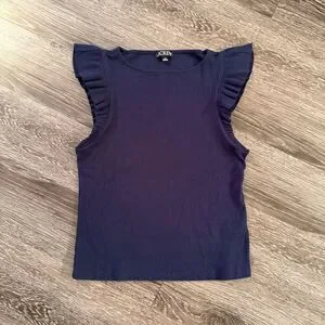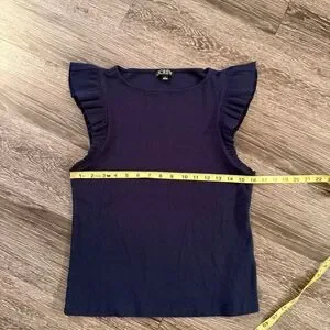 J. Crew Navy Ribbed Ruffle Sleeve Top