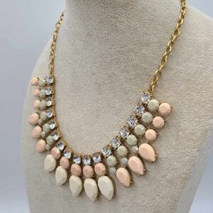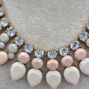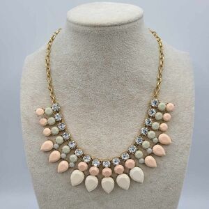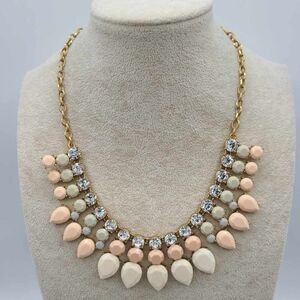 J Crew Pink White Gray Resin Stones with Clear Crystal Necklace NWOT!