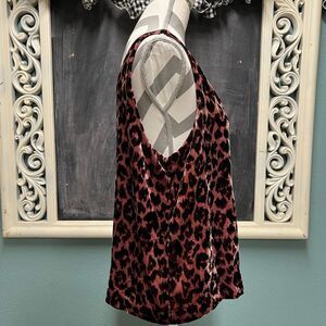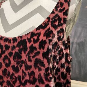 Stylish leopard print camisole. Features a bold pink and black pattern. Perfect for layering or wearing alone.