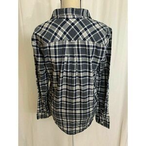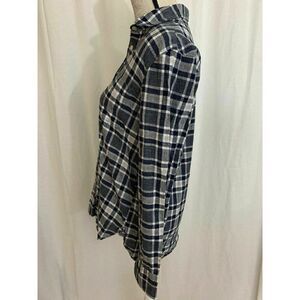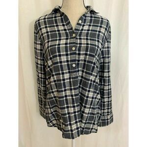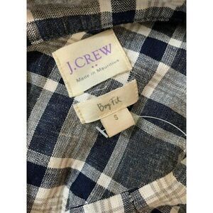 J Crew Womens Navy Blue White Plaid Flannel Boy Fit Long Sleeve Top Small