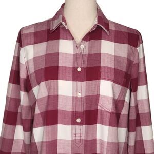 J. Crew Purple Plaid 100% Cotton Half Button Down Long Sleeve Tunic Top