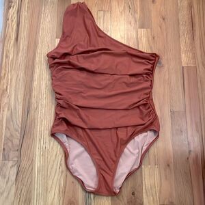 J. Crew Re-Imagined one shoulder Swimsuit in Rust orange size 18