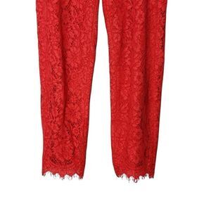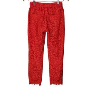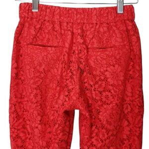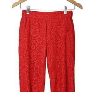 EUC! Elegant, unique red lace cropped pants. Perfect for stylish occasions. Comfortable fit with elastic waist, back pockets.