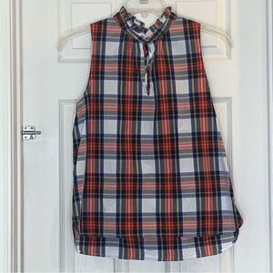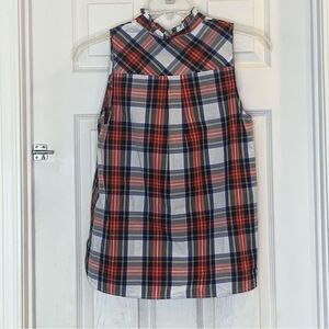 J. Crew Ruffle Plaid Sleeveless Mock Turtleneck Top Size 8