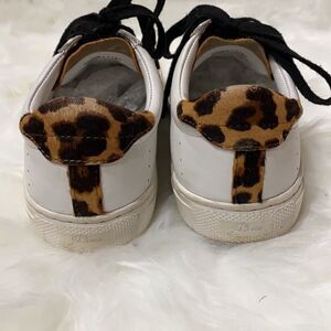 J Crew Saturday Sneakers White Leopard Calf Hair Detail L7197 Size 7 * Leather upper. * Synthetic lining. * Rubber sole. Condition: Good used condition, wear on outsole. Size: 7