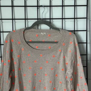 J. Crew Scoop Neck Pullover Sweater Womens M Beige Orange Polka Dot Cottagecore