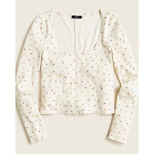 J. Crew Scoopneck Ribbed Cardigan Top Rosebud Print L