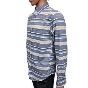 J. Crew Shirt Men M Slim Fit Blue White Multicolor Horizontal Striped L/S