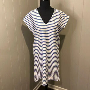 J Crew Small Midi Sleeveless Dress Stripes V Neck Side slits on hem