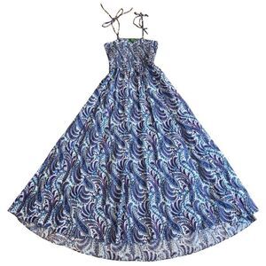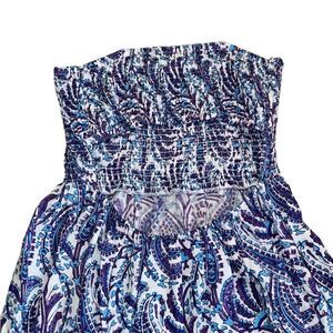 J. Crew Smocked Linen-Blend Bandeau Beach Dress in Purple Paisley Size Large