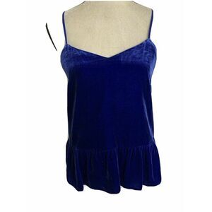 J Crew Solid Royal Blue V Neck Velvet Tank top