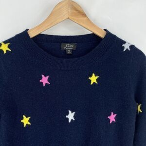 J Crew Sweater Size XS Womens Navy Pink Cashmere Star Crew Neck Knit Pullover