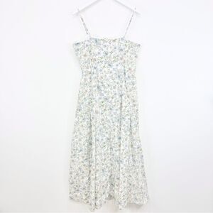 J. Crew White Pastel Floral Button Up Strappy Long Cotton Summer Dress