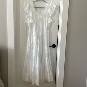 J. Crew White Smocked Flutter Sleeve Tiered Maxi Dress