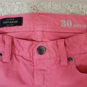 J. Crew~Woman Size 30~Pink Toothpick Ankle Skinny Jeans.