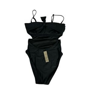 J. Crew Womens Cutout Tie-Back One Piece Swimsuit Black Size 2 NEW